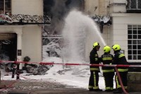 The Bishop of Exeter has praised the “heroic” efforts of firefighters who have spent the past few days fighting a major fire opposite Exeter Cathedral.