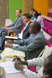 Reverend David Peck, Archbishop of Canterbury’s Secretary for International Development and Douglas Alexander, Secretary of State for International Development, addressed a number of bishops in an afternoon session at the Lambeth Conference, focusing on the development of education in fragile state settings and the church’s role in scholastic development. In attendance were the Archbishop of Canterbury, Rowan Williams and the Archbishop of Burundi, Bernard Ntahoturi.