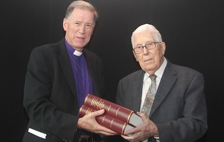 Jack Francis, Archivist Emeritus at the Diocese of Ottawa, presented Primate of the Anglican Church of Canada Fred Hiltz with a copy of his new two-volume work, A Biographical Dictionary of Anglican Clergy in the Diocese of Ottawa Born Before 1900, for the General Synod Archives.