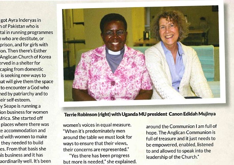 En una entrevista en el último número de la revista Mundial Anglicana la Revd. Terrie Robinson dijo que el ministerio de la mujer, tanto laicas como ordenadas, todavía no se las considera y bendice en la iglesia en la forma en que debería ser.