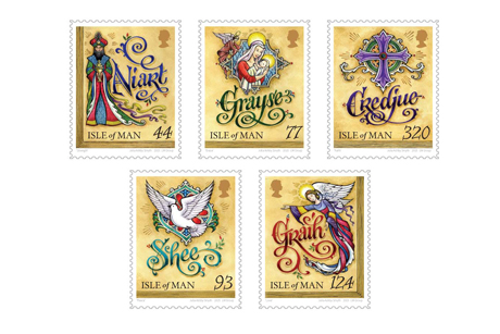 The 250th anniversary of the publication of the first Manx Gaelic BCP has now been marked by the publication of five special Christmas stamps by the Isle of Man Post Office. Designed by local artist Julia Ashby-Smyth, the stamps feature a Manx word and a religious emblem closely associated with the spiritual aspects of Christmas.