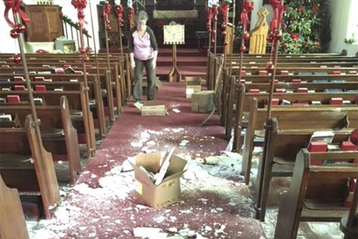 “Sadly, this week’s heavy rains brought down the ceiling in church”, an official notice on its Facebook page said. “In order to be safe we will be holding the services in the church hall until further notice.