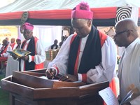 Thousands of people packed into a stadium in the Kigali for the enthronement of Archbishop Laurent Mbanda as the Primate of Rwanda.