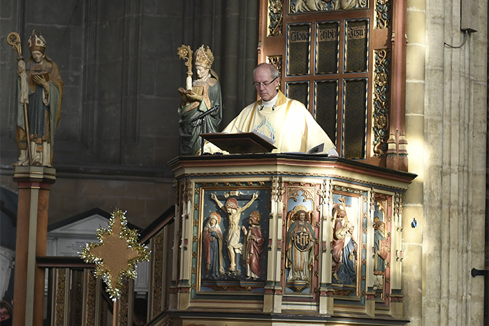 The Archbishop of Canterbury, Justin Welby, joined hundreds of people in an open-air carol service on the streets of Canterbury on Christmas Eve. The following day he preached the sermon during the Christmas Day Eucharist at Canterbury Cathedral. The carol service took place in Canterbury’s retail area – not far from the precincts of Canterbury Cathedral – the mother church of the Anglican Communion.