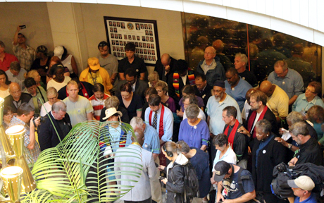 Episcopal Diocese of North Carolina Bishop Michael Curry received just such a call from the Rev. Randall Keeney, vicar of St Barnabas Episcopal Church in Greensboro, before Keeney’s May 6 arrest for civil disobedience during the second “Moral Monday” protest against actions of the state legislature in Raleigh. On July 29, the movement marked its 13th week with a march to the state capitol and an interfaith social-justice rally. The weekly rallies – although not the push for change – may now take a hiatus until lawmakers return from their summer break, participants say.