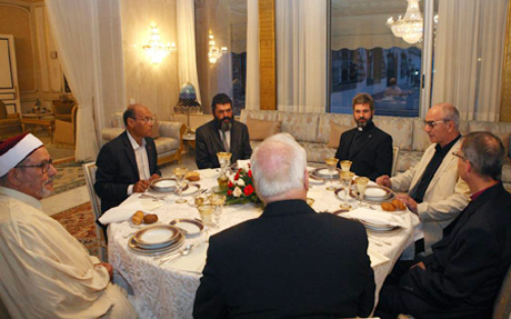 [Diocese of Egypt] At the beginning of Ramadan, Bishop Bill Musk joined the Roman Catholic archbishop, the Russian Orthodox priest and the Jewish rabbi to break the fast with President Moncef Marzouki of Tunisia. The President was solicitous of the felt-needs of minorities in the country and insistent that the new Constitution will guarantee freedom of worship and association in Tunisia. He was very upbeat about the political process, if somewhat less positive about the economic prospects and some aspects of the security situation in the country.