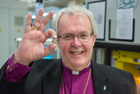 In addition to being able to purchase Bishop Gregory’s round pound from the Royal Mint, people can also have a go at making their own pound, by striking a coin at the new Royal Mint Experience museum in Llantrisant, South Wales. The centre opens on 18 May and visitors will be able to mint the coin until the end of the year.