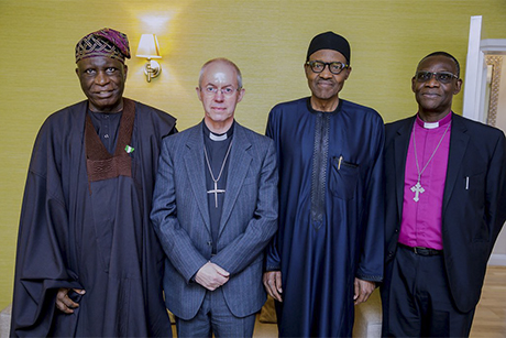 The President of Nigeria, Muhammadu Buhari, held a meeting today with Archbishop of Canterbury Justin Welby and the Secretary General of the Anglican Communion, Dr Josiah Idowu-Fearon. The two Anglican leaders were received by the President at Abuja House in London, Nigeria’s High Commission. A presidency spokesman had earlier said that the President would be discussing “inter-religious harmony in Nigeria and the world” with the Archbishop, who was described as the President’s “good friend”.