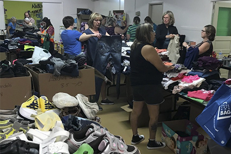 They put out a call to the community that they would be accepting donations between 1 pm and 4 pm the Sunday after the fire. “By 1.30, 2.00 pm at the latest, we had our crypt completely full. I had to open up another room in the cathedral in the basement, and that was filling up. We had the landing of the cathedral completely full of boxes and bags,” says Bernhardt. “People were stopping in the middle of the street and bringing stuff in. It was amazing.”