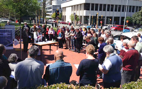 The leaders of New Zealand's two largest churches show their solidarity with Bishop Justin Duckworth and his vigil for penal reform.